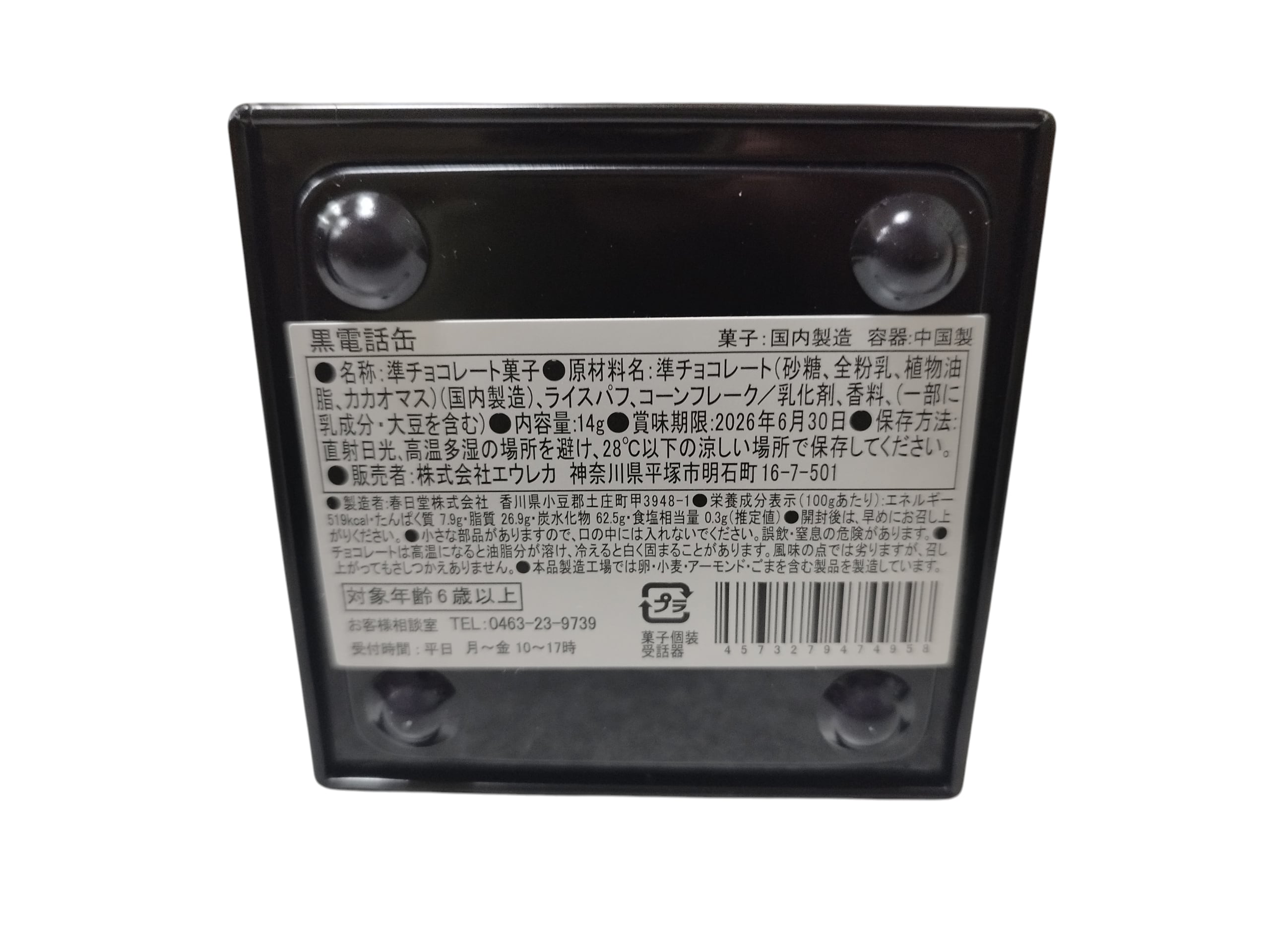 この商品は、春日堂株式会社が製造した甘くて美味しいチョコレートが14g入った特別なブリキ缶です。クラシックな黒電話のデザインは、どこか懐かしく、見る人を思い出の世界へと誘います。大人から子供まで、多くの方に楽しんでいただける、ユニークなスイーツ体験がお待ちしております。