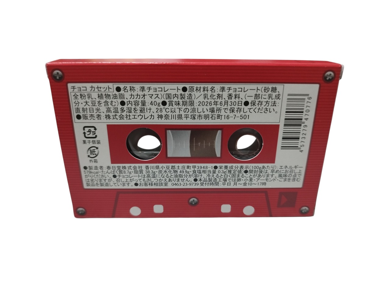 この商品は、春日堂株式会社が製造した美味しいチョコレートが40g入ったユニークなアイテムです。カセットテープ風のデザインは、見る人を懐かしさで包み込み、心を和ませる存在感があります。大人から子供まで多くの方々に楽しんでいただける、特別なスイーツ体験が待っています。