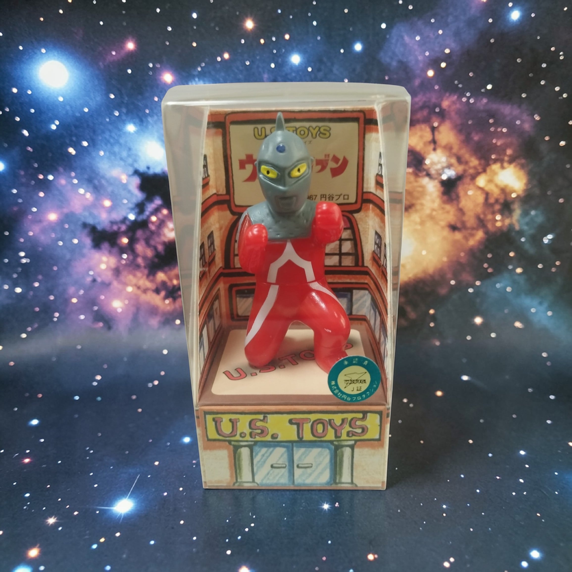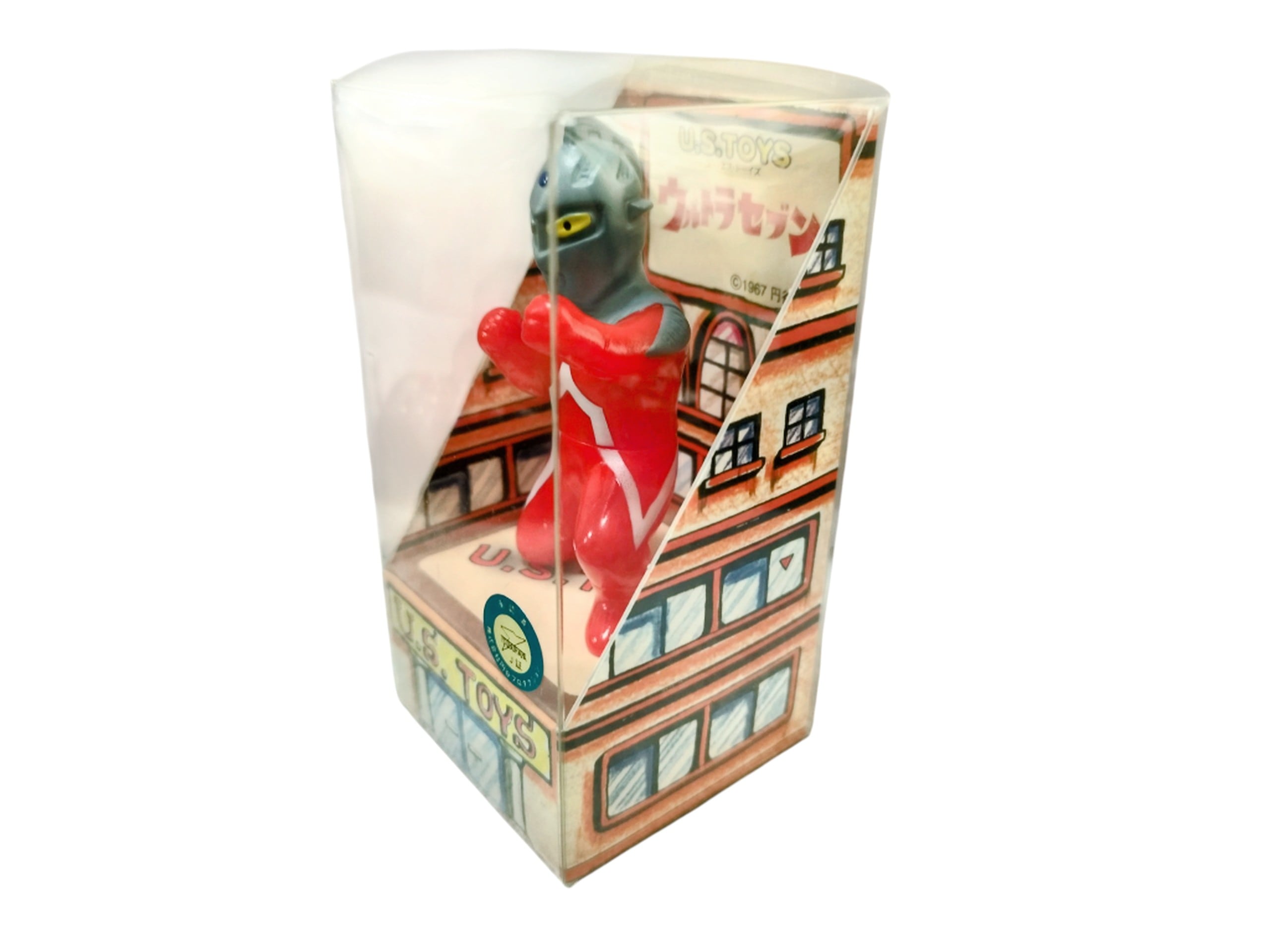 この特別な商品は、ウルトラセブンをモチーフにしたUS.TOY製のミニソフビです。円谷プロの正式な版権を取得した貴重なアイテムで、ファン必見の一品となっています。箱のサイズは、高さ約11.5cm×横約5.8cmで、コレクションの一環としても最高の存在感を発揮します。