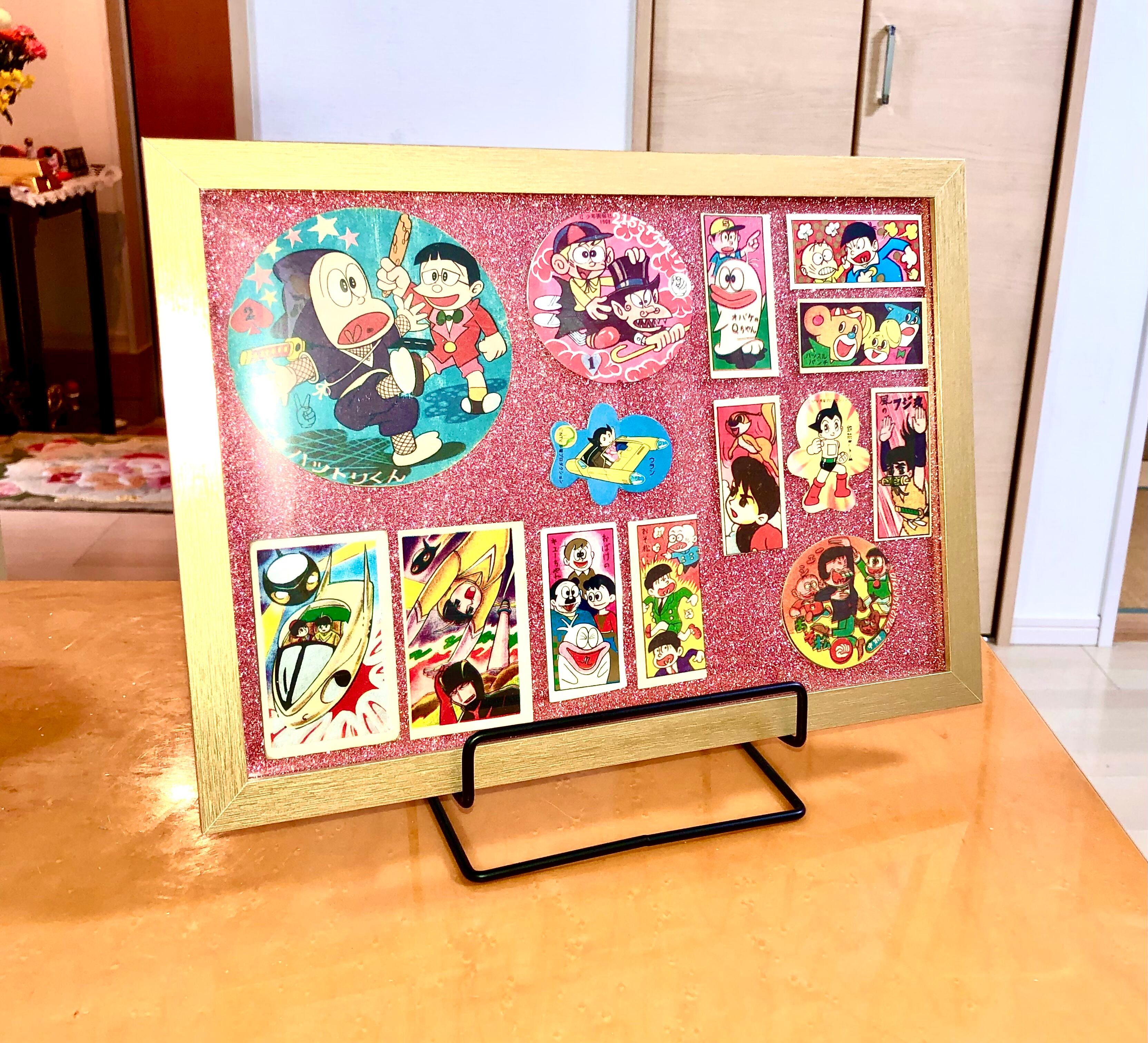 種類豊富な、懐かしの昭和レトロなメンコを額装‼️忍者ハットリくん・怪物くん・オバケのQ太郎・スーパージェッター・おそ松くん・宇宙少年ソラン・鉄腕アトム・ハッスルパンチ・風のフジ丸!