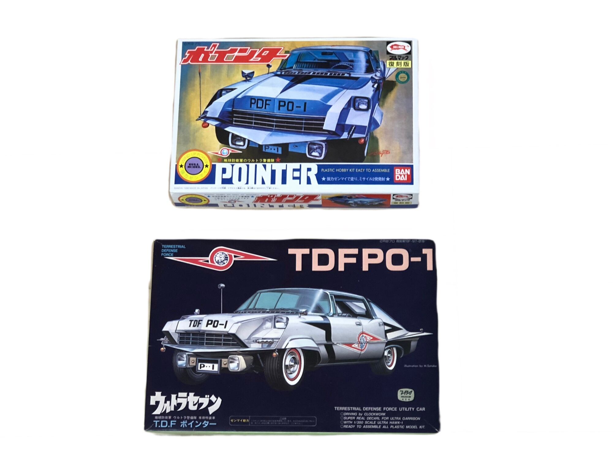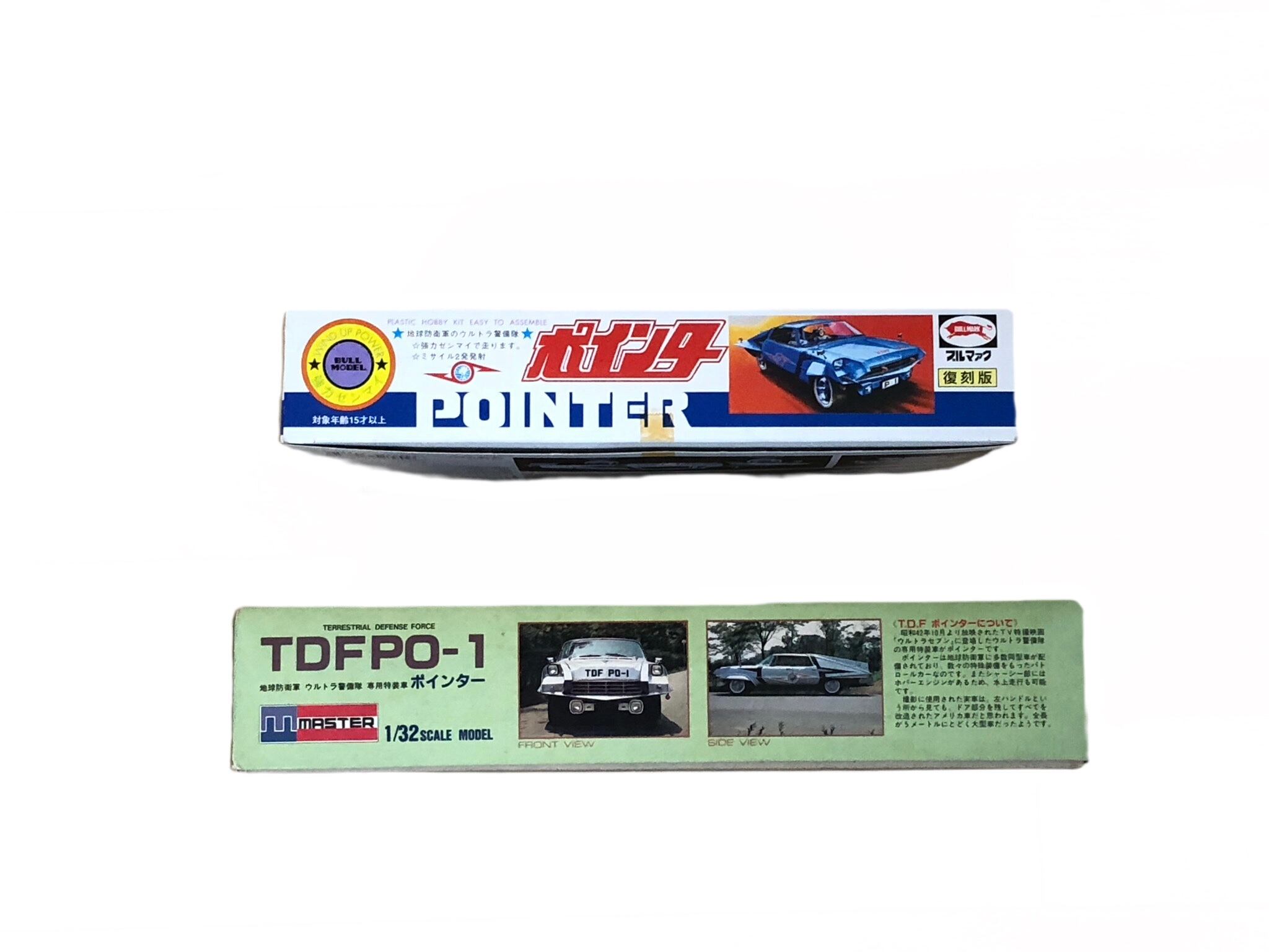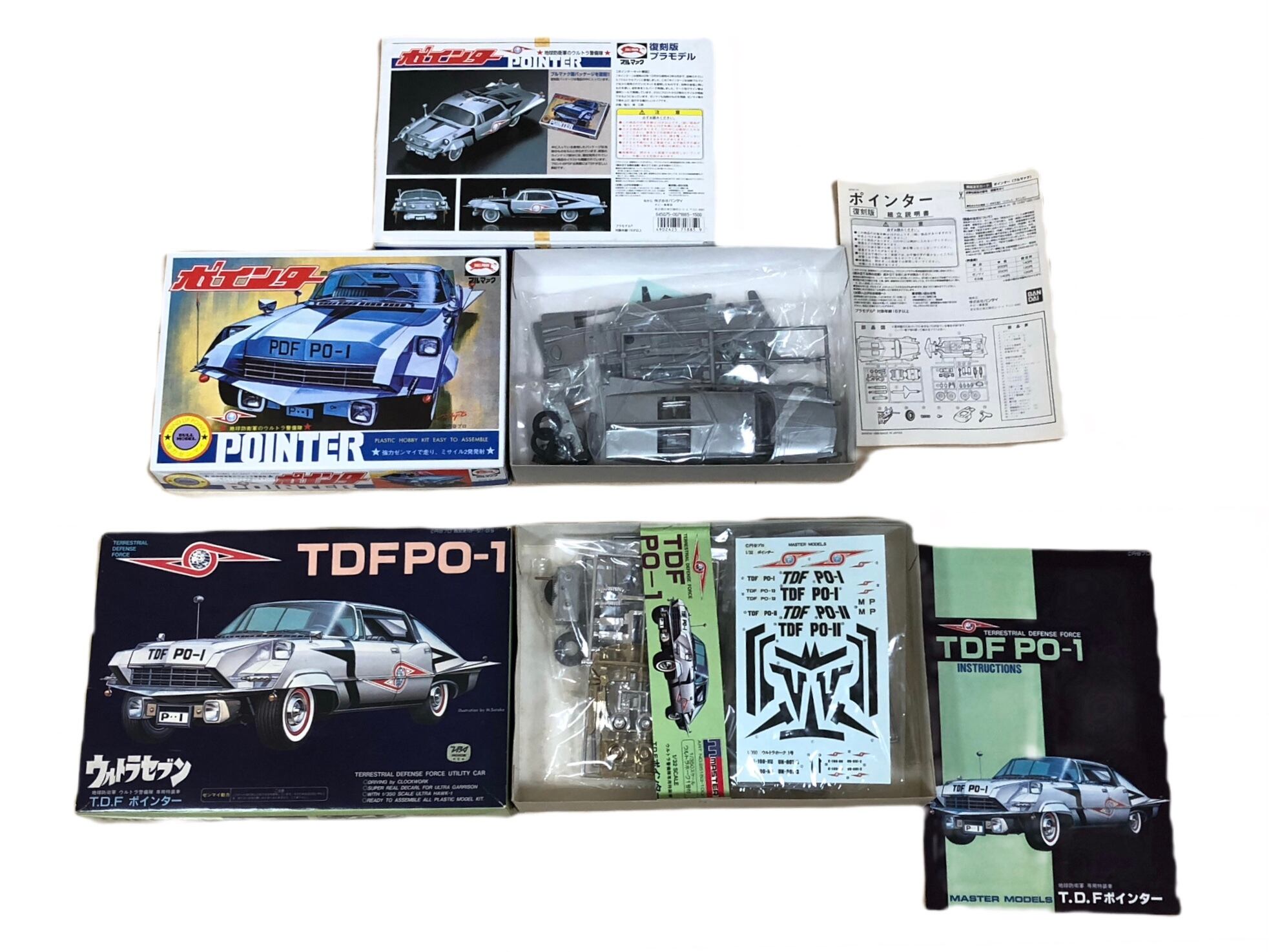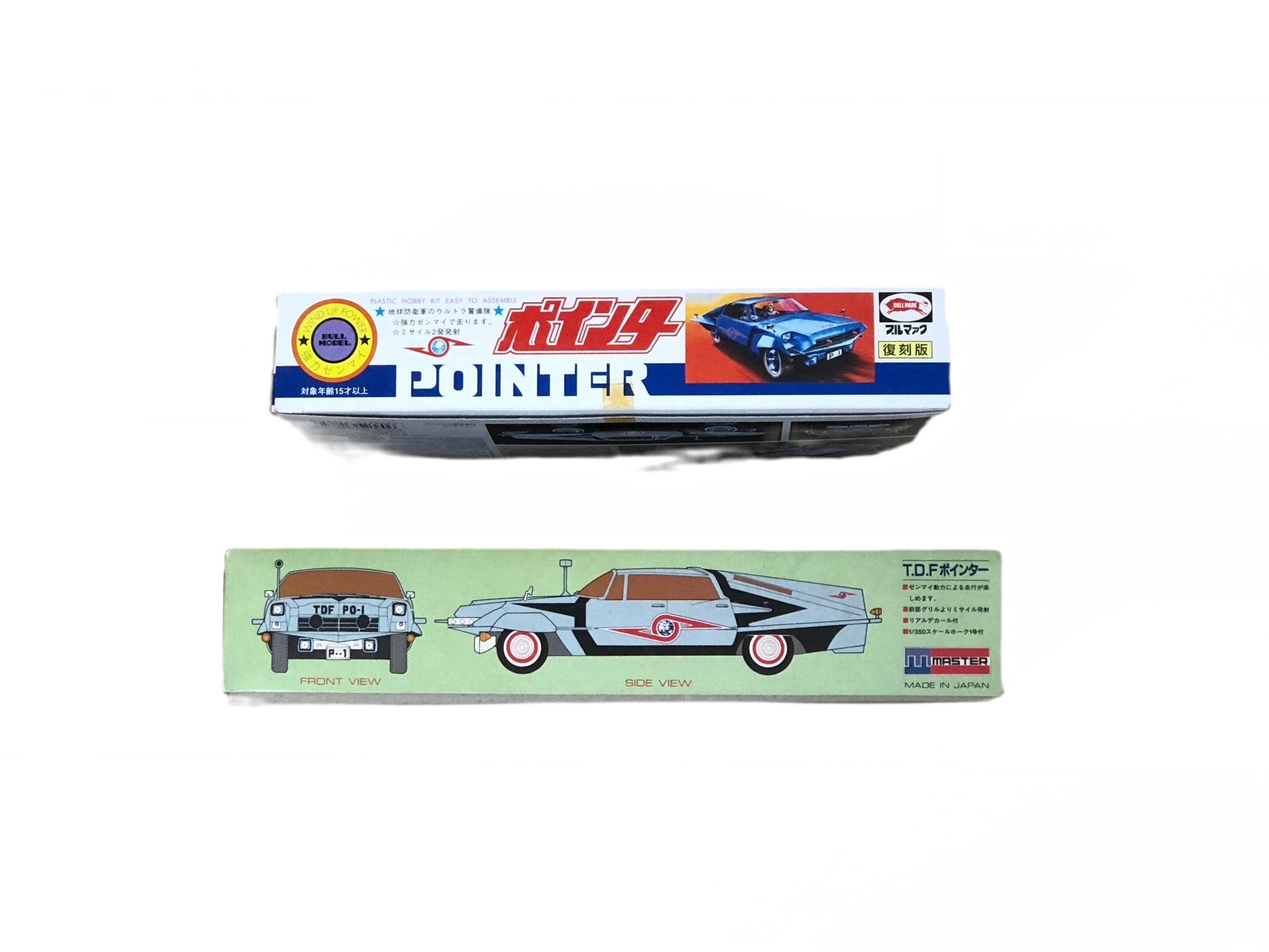 ブルマァク復刻版ポインターとマスターモデルのポインターのプラモデル2点セットになります。ウルトラセブンに登場する、ウルトラ警備隊の車、ポインターになります。