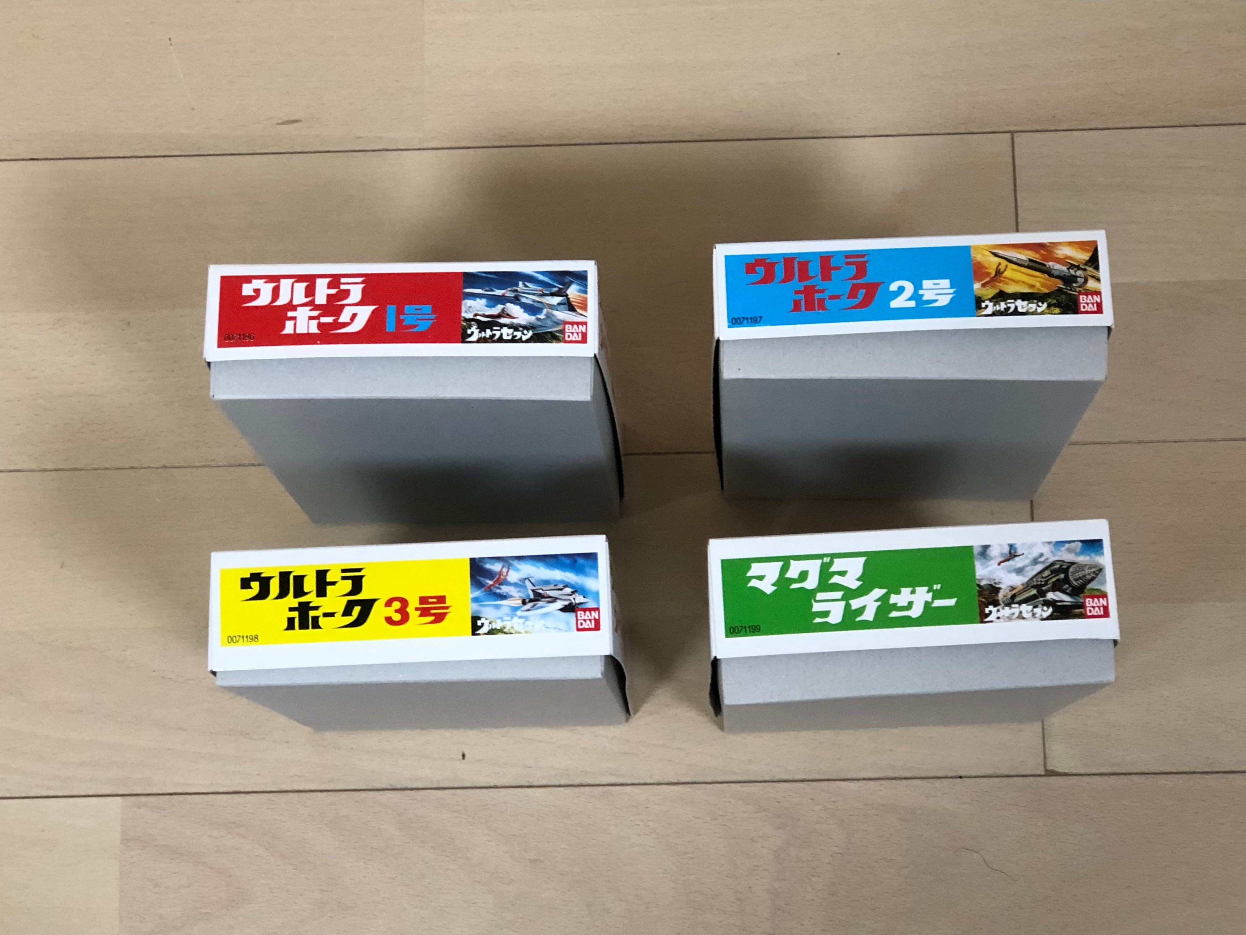 バンダイのウルトラセブンに登場するメカです。ウルトラホーク1号、2号、3号、マグマライザーの4種です。