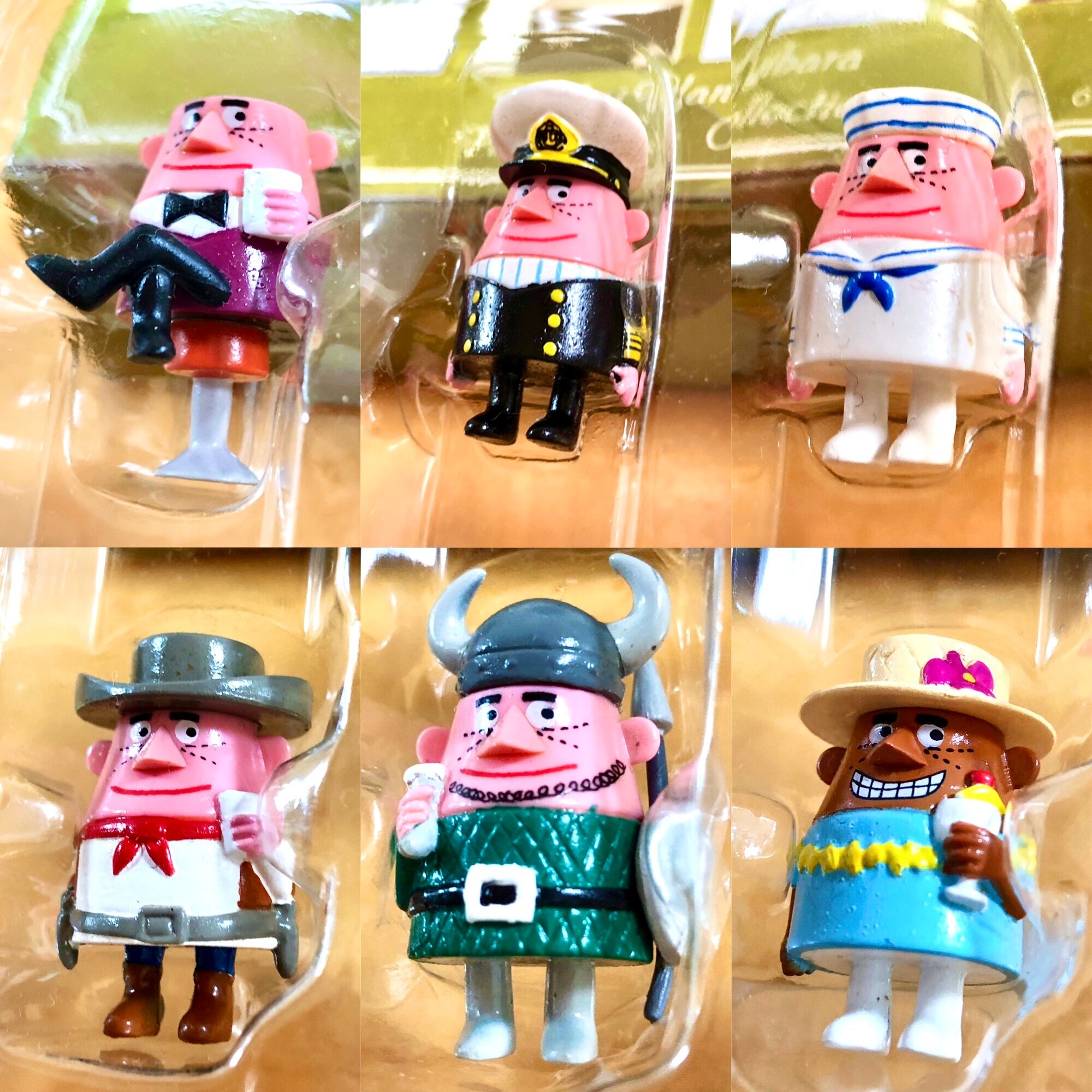 アンクル・トリスのミニフィギュアになったピンバッチ6個が1セットになっております。箱付きです。