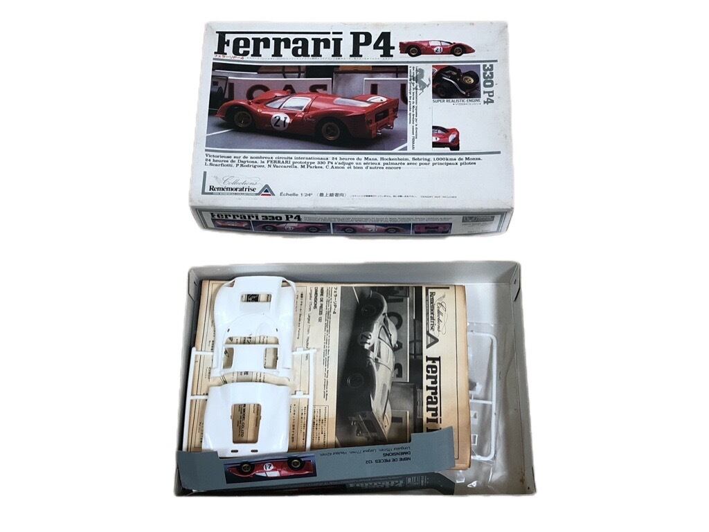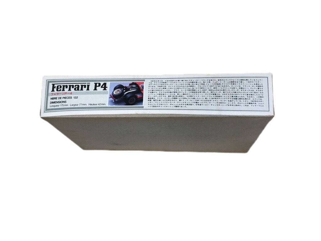 フェラーリP4のプラモデルになります。1/24スケールで、古いものになります。1960年代に活躍したフェラーリの歴史あるスポーツカーになります。