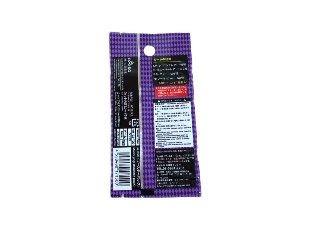 蟲神器のブースターパックになります。未開封です。一袋に5枚入っておりますが、どんなカードが入っているかは、開けてみないとわかりません。開けてからのお楽しみになります。