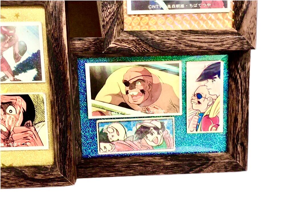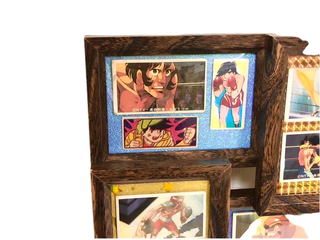 まずは、ジョーの名シーンが詰まったメンコ額装。キャラクターたちの熱い戦いや感動的な場面を、リアリティ溢れるメンコの絵柄で再現しました。置いておくだけで目を引く存在感があり、あなたの部屋にアクセントを与えます。