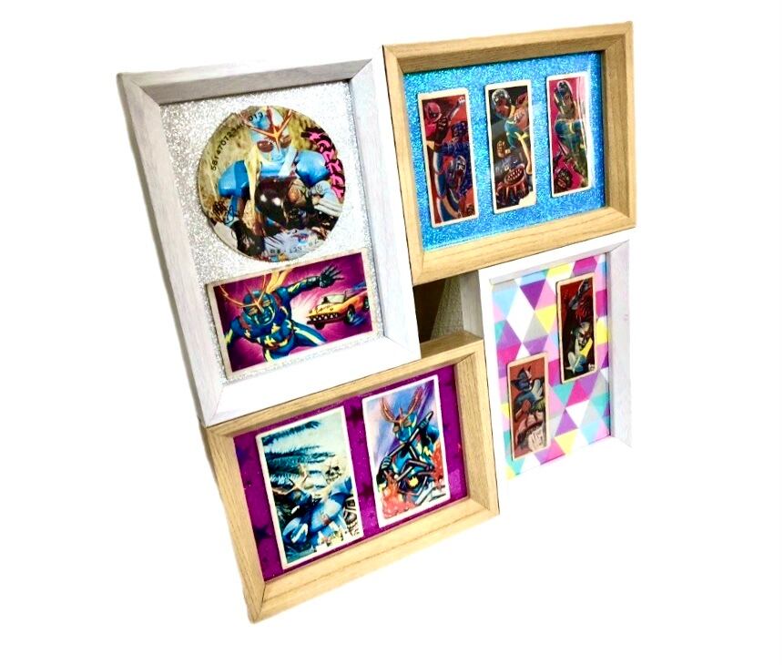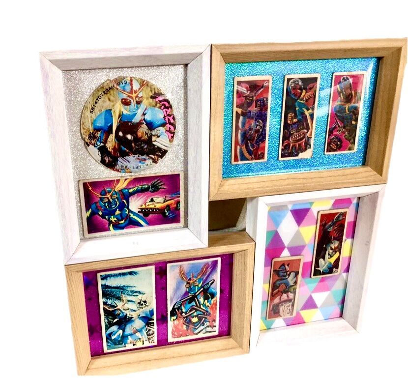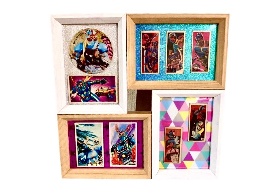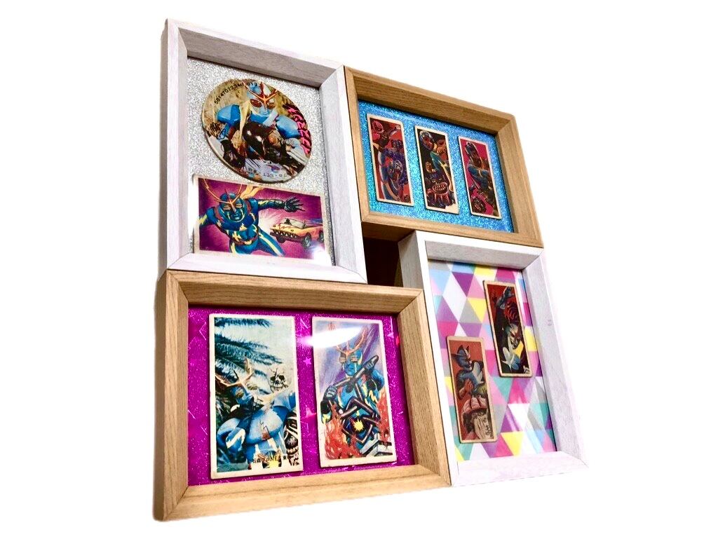 懐かしい特撮ヒーローの、昔遊んだメンコをリパーパスして額装で登場しました。