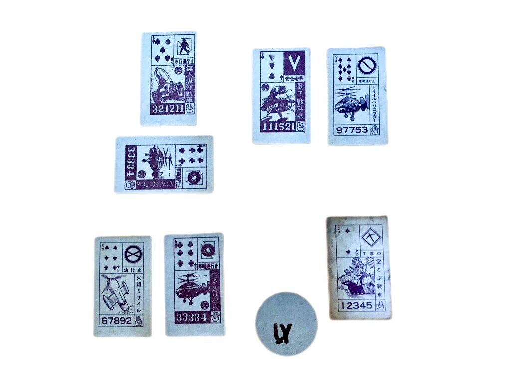 細角メンコ中7枚、丸メンコ小1枚の計8枚になります。古いメンコなのて、経年劣化のため、擦れや汚れ、色褪せ、書き込み等があることをご了承下さい。