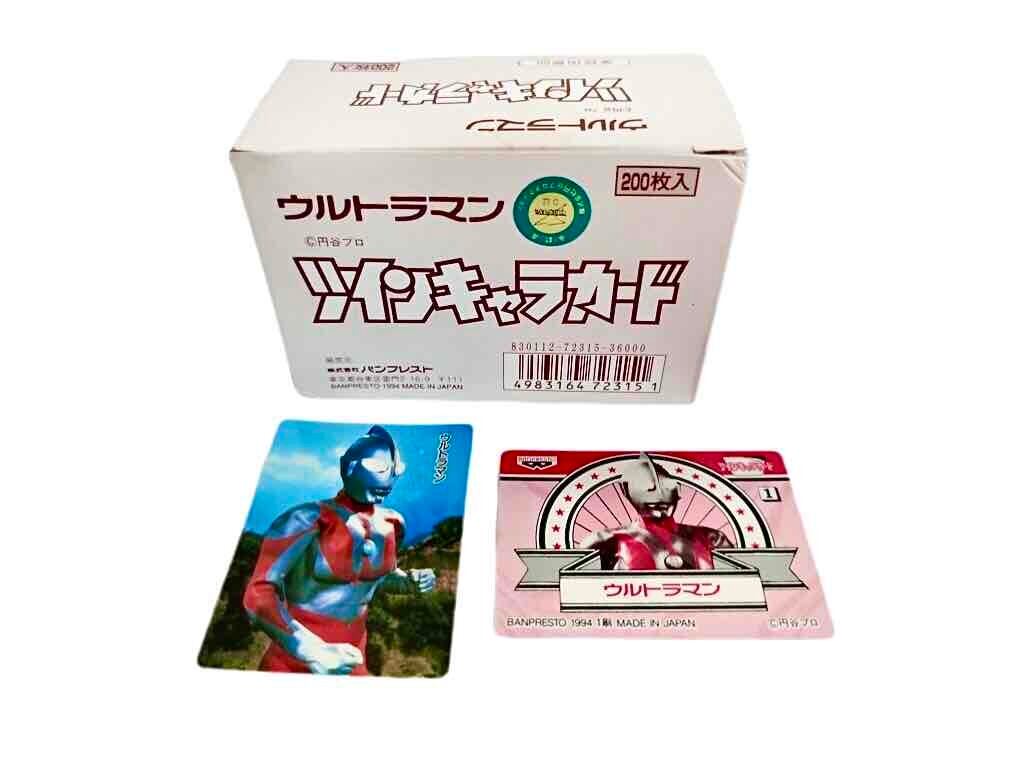ウルトラマンツインキャラカードは、箱入りで、200枚入っております。一部を画像に上げてますが、どのような内容のカードが入っているかは、お楽しみになります。ウルトラセブンなどのカードも入っております。
