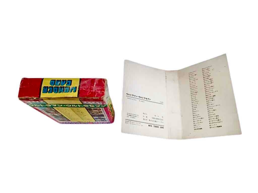 ウルトラマン・ウルトラセブンカード図鑑は、㈱朝日ソノラマより、昭和53年8月15日第1刷発行。全部でカードは64枚入っております。64枚目のカードは、少し焼けが見られます。カードケースは、かなりセロテープで、止めてあり、状態はいいとは言えません。