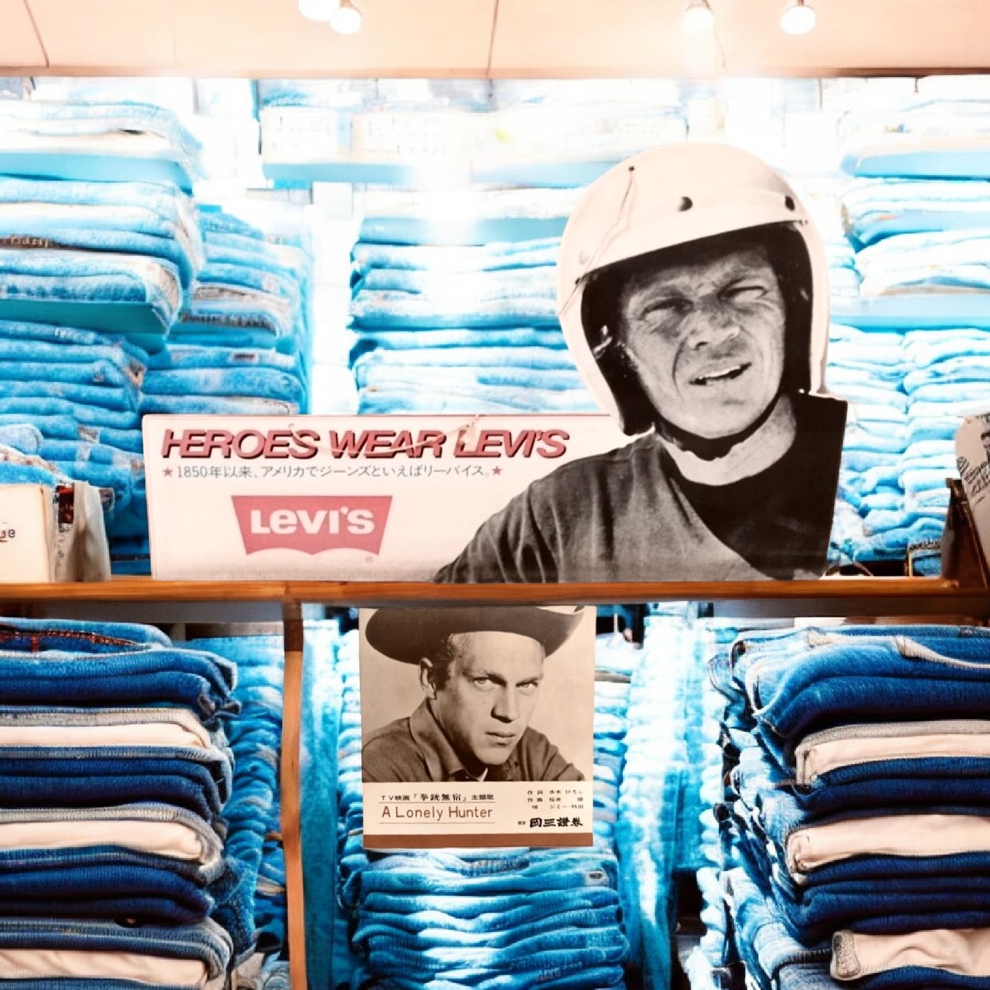 スティーブ・マックィーンと言えば、映画『大脱走』での、バイクのスタントで、一躍有名になり、『荒野の七人』、『シンシナティ・キッド』、『ブリット』、『ゲッタウェイ』、『華麗なる賭け』、『タワーリング・インフェルノ』や『栄光のル・マン』等で、活躍されたのは、言うまでもありませんが、リーバイスのPOPにもなっているとは、驚きですね。