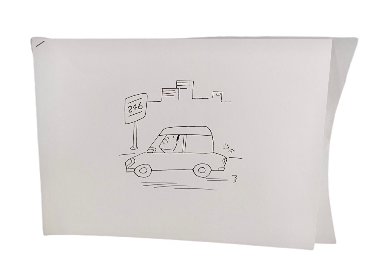 福地泡介の246を車で運転するイラストと文章のセットです。