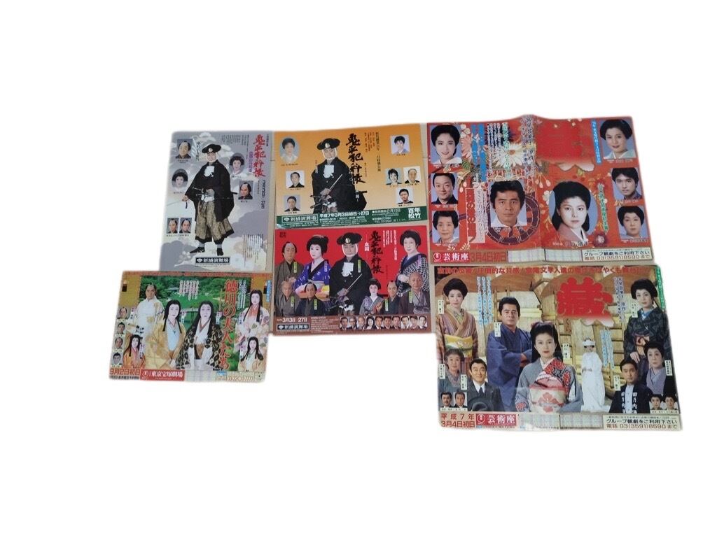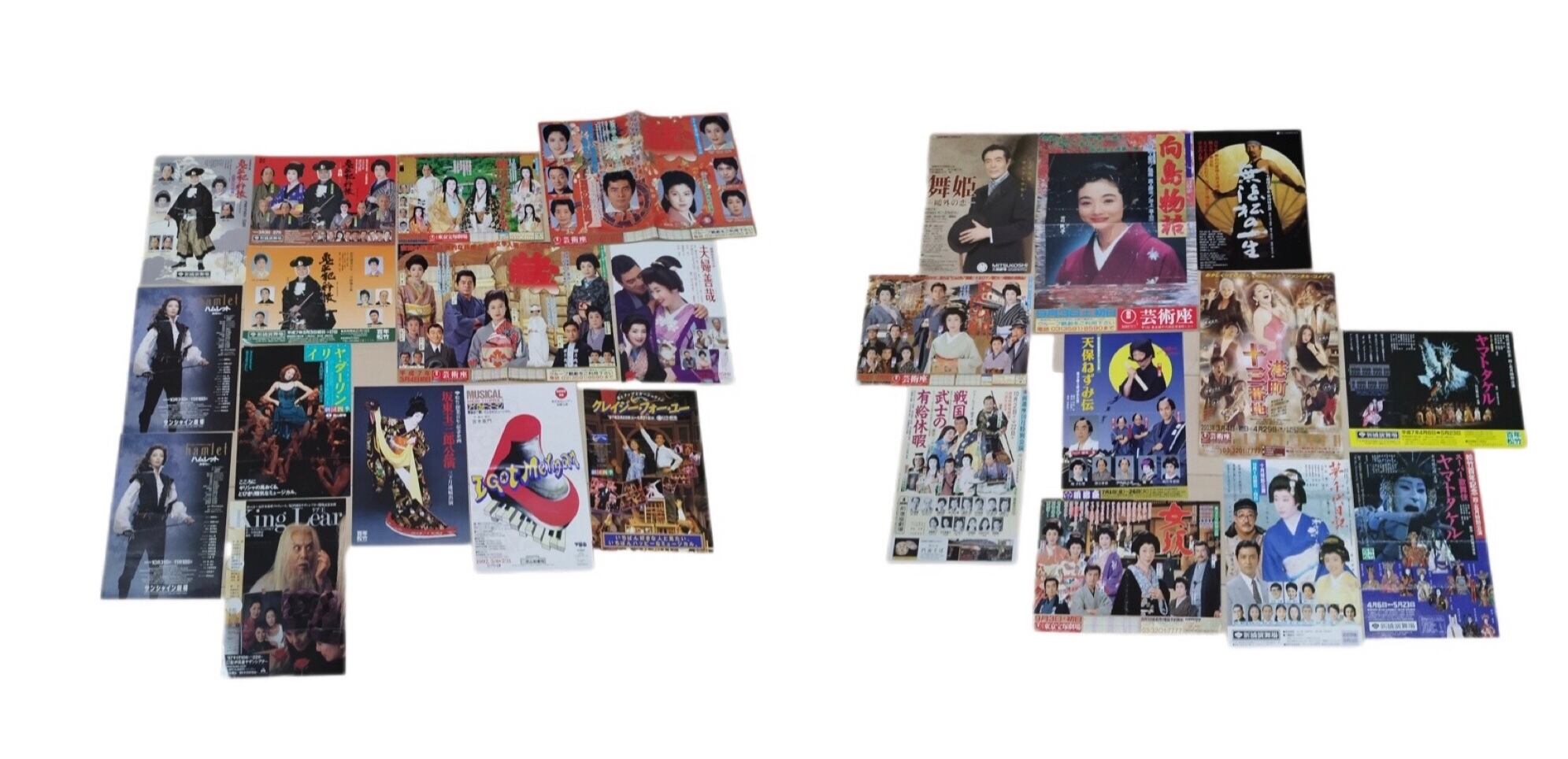 時代劇やミュージカルなど、懐かしい舞台やエンターテイメントの世界に思いを馳せることができるチラシ類のセットです。