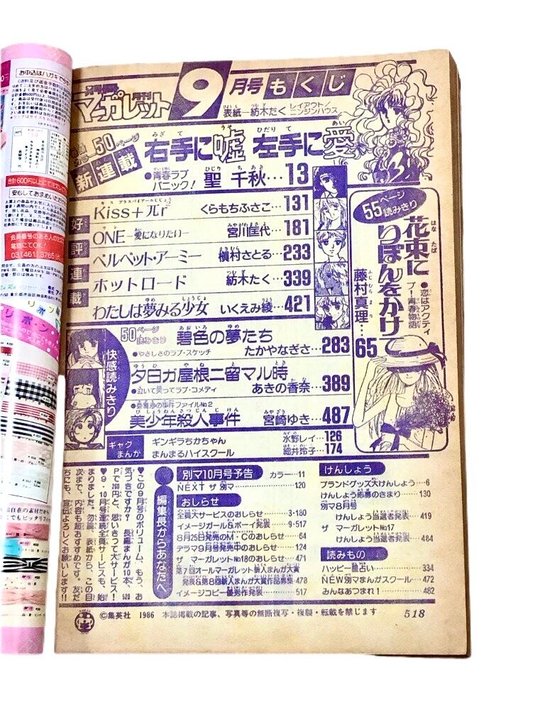 別冊マーガレット 1986年9月号 限定1点
