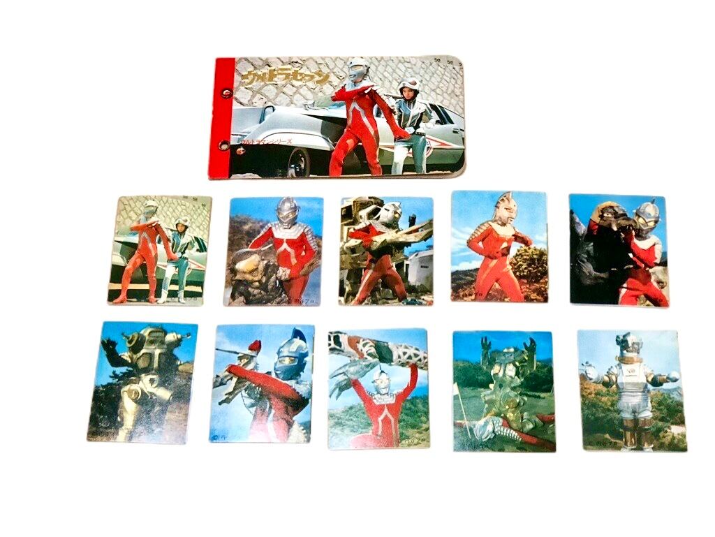 この商品は、ウルトラセブンをテーマにした貴重なカードホルダーと、特別なカード10枚のセットです。収集価値のある当時物として、ウルトラセブン、アンヌ隊員、ポインター、キングジョーなど、多彩なキャラクターが描かれています。カードホルダーは未使用品で、状態も非常に良好です。